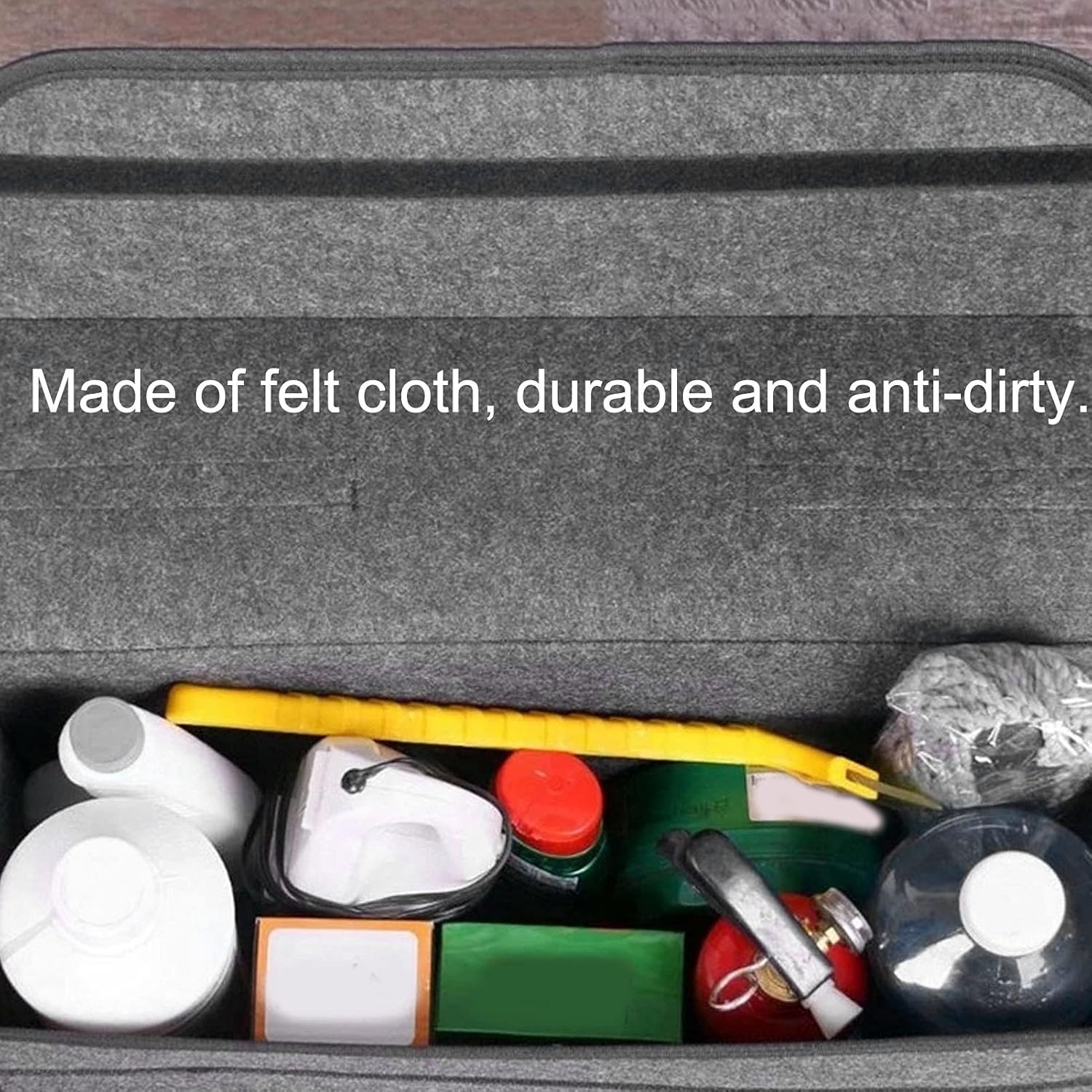 Mantén tu vehículo siempre ordenado con esta caja de almacenamiento de fieltro, diseñada para ofrecer gran capacidad, resistencia y estilo. Ideal para guardar herramientas, productos de limpieza, accesorios de viaje o cualquier objeto pequeño que desees mantener en su lugar.