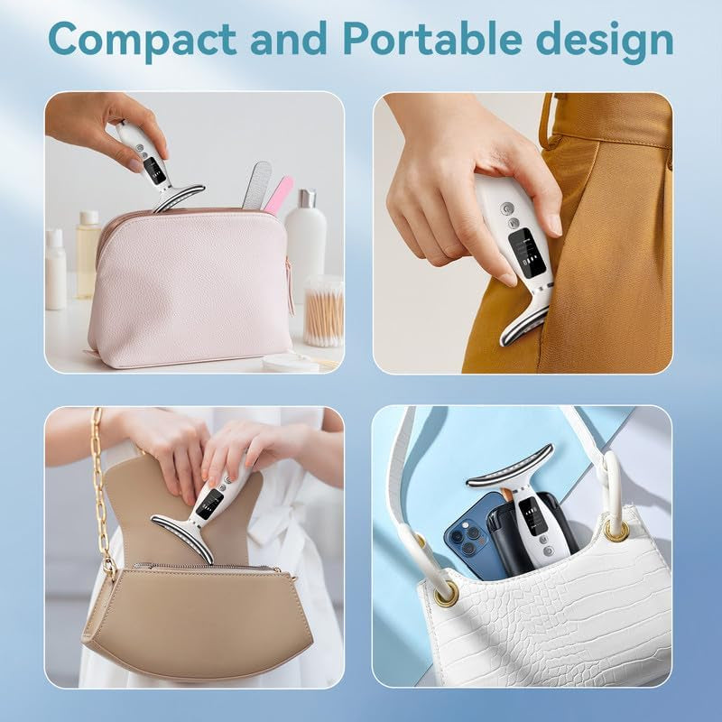 El dispositivo de belleza para el cuello y rostro es una herramienta de cuidado personal de última generación. Diseñado para brindar un masaje por vibración suave pero efectivo, ayuda a estimular la circulación sanguínea y promover la producción de colágeno, logrando una piel más firme, tersa y juvenil.