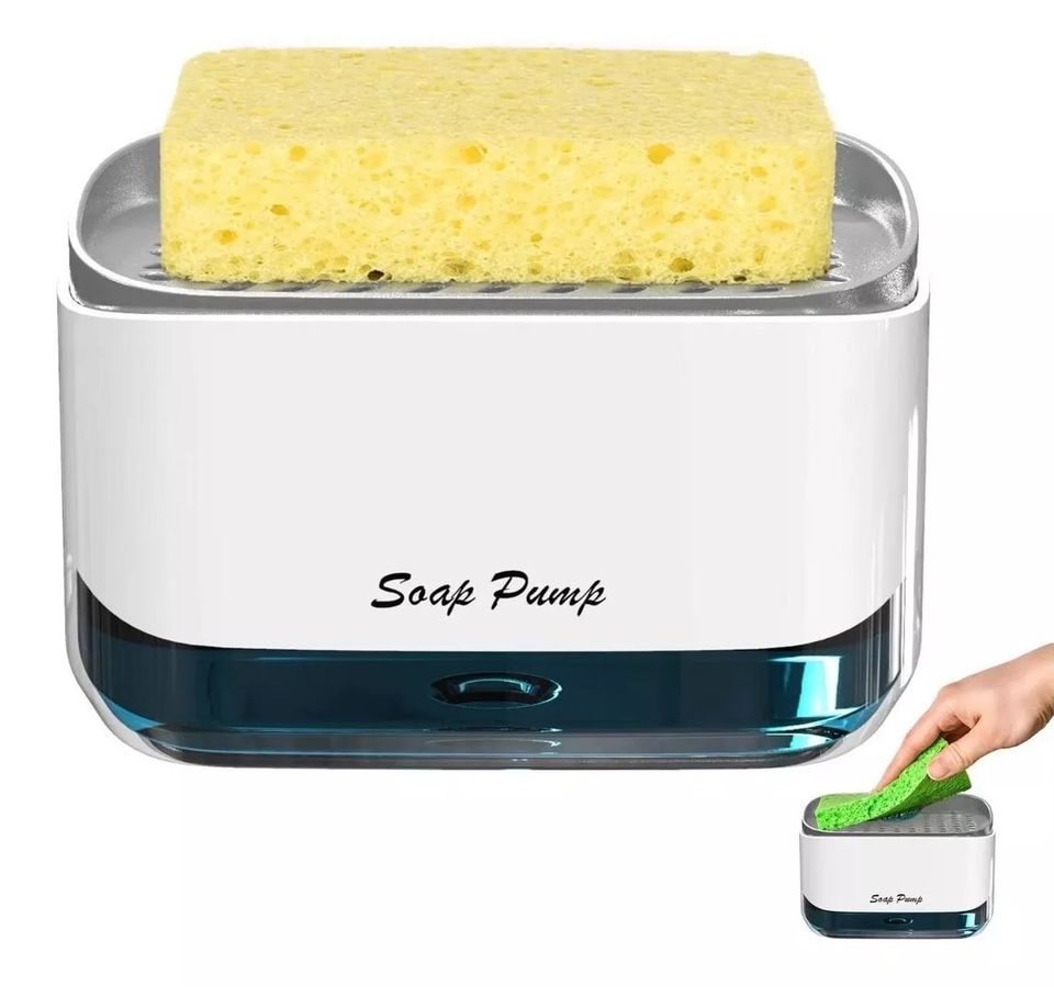 Este práctico dispensador 2 en 1 combina un porta esponjas con un dispensador de jabón integrado, permitiéndote lavar tus platos de forma más rápida, limpia y sin desperdiciar jabón.