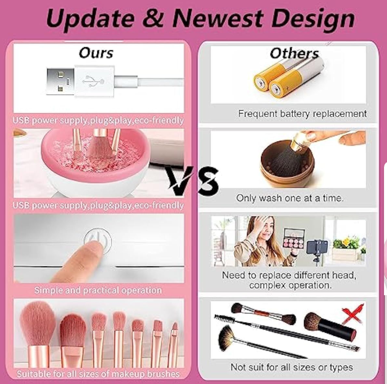 Máquina limpiadora de brochas de maquillaje eléctrica, portátil, automática, USB, herramienta limpiadora de brochas de maquillaje para todos los tamaños, base líquida, sombra de ojos, cepillosobre este artículoLimpieza eficiente: la máquina limpiadora de brochas de maquillaje tiene suficiente potencia. El flujo de agua giratorio de alta velocidad, combinado con la columna de limpieza y la solución limpiadora de brochas de maquillaje, puede limpiar eficazmente el 98% de los residuos de maquillaje y la suciedad dentro del cepillo cosmético.【Fácil de usar】: esta máquina limpiadora de brochas de maquillaje no requiere montaje, limpieza con un solo botón y fácil operación. Simplemente conecta el cable USB, solo tienes que añadir la cantidad adecuada de agua y maquillar el limpiador de brochas y luego enciéndalo/apaga.Mejora de la función de limpieza y secado: nueva actualización, la versión antigua del engranaje fijo se actualiza a engranajes altos y bajos, diferentes tamaños de brochas de maquillaje utilizando diferentes equipos para limpiar y secar. Asegúrate de que la brocha de maquillaje esté limpia y en su lugar, y utiliza la función de deshidratación para deshidratar y secar el agua del pincel de maquillaje, mantener el pincel de maquillaje limpio e higiénico, y extender la vida útil de la brocha de maquillaje.Fácil de limpiar y apertura de tazón grande